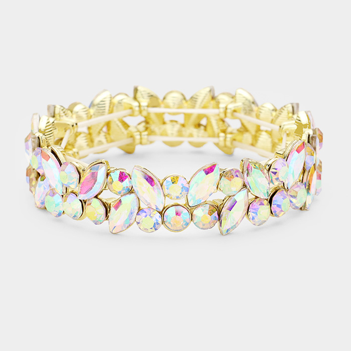 Glass Crystal Marquise Stone Cluster Stretch Bracelet