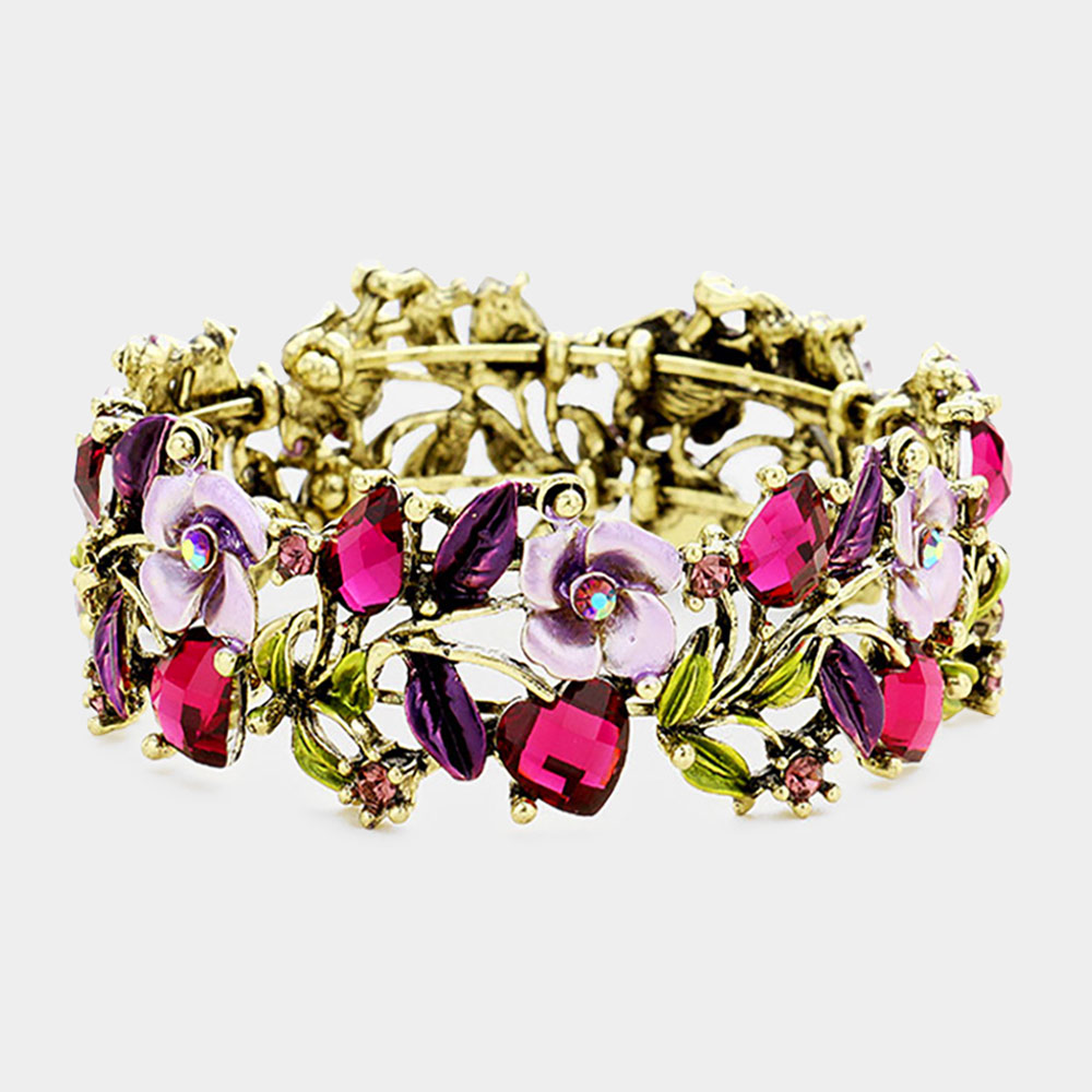 • Brighten your look with a floral statement bracelet featuring vibrant petals, sparkling accents, and intricate detailing. Adjustable for a comfortable fit, this bold accessory brings a touch of whimsy and elegance, making it perfect for special occasions or adding flair to everyday style.