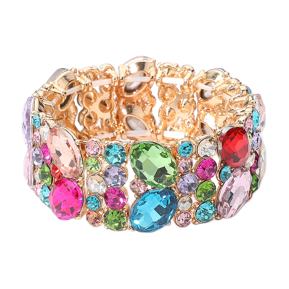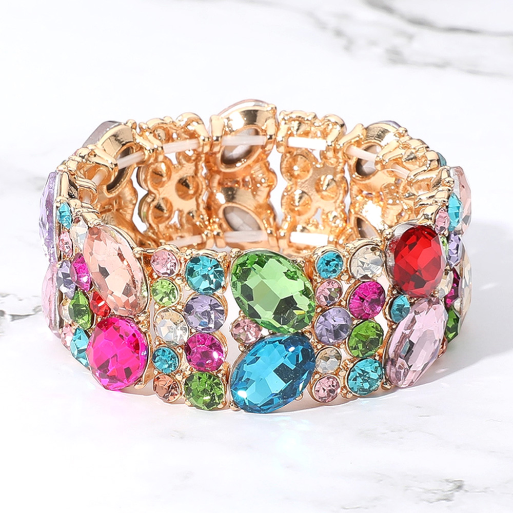 Glass Crystal Oval Round Stretch Evening Bracelet