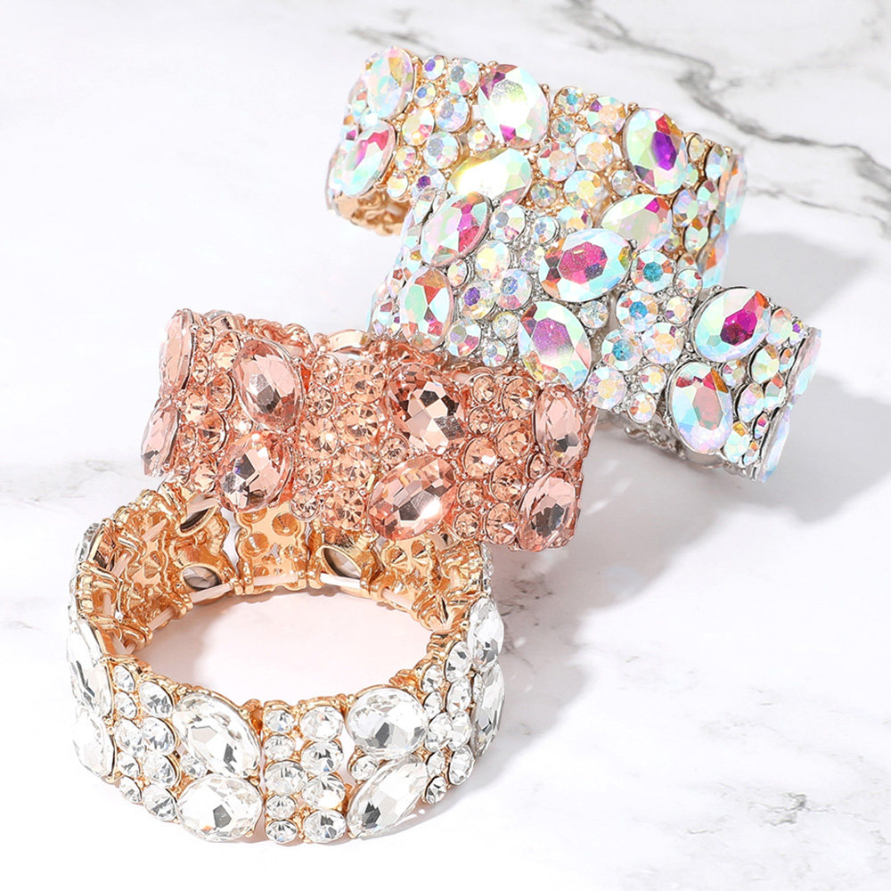 Glass Crystal Oval Round Stretch Evening Bracelet