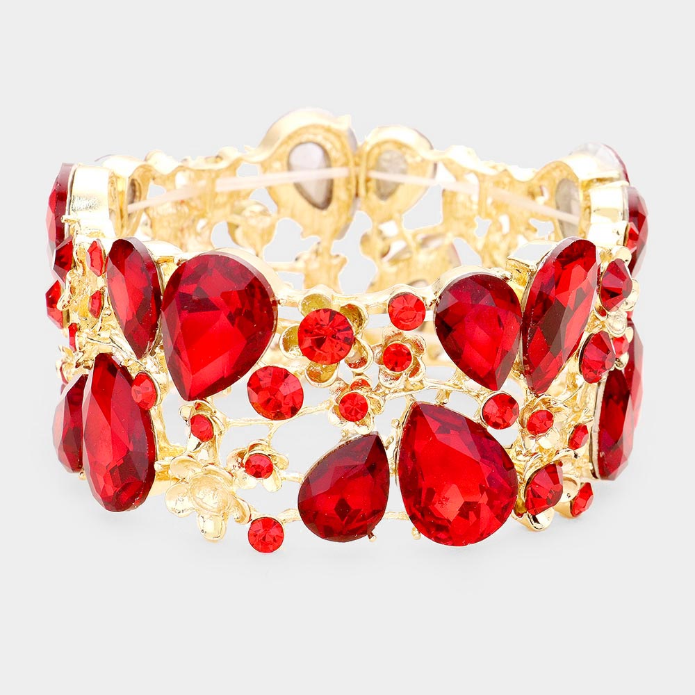 Glass Crystal Teardrop Floral Stretch Evening Bracelet