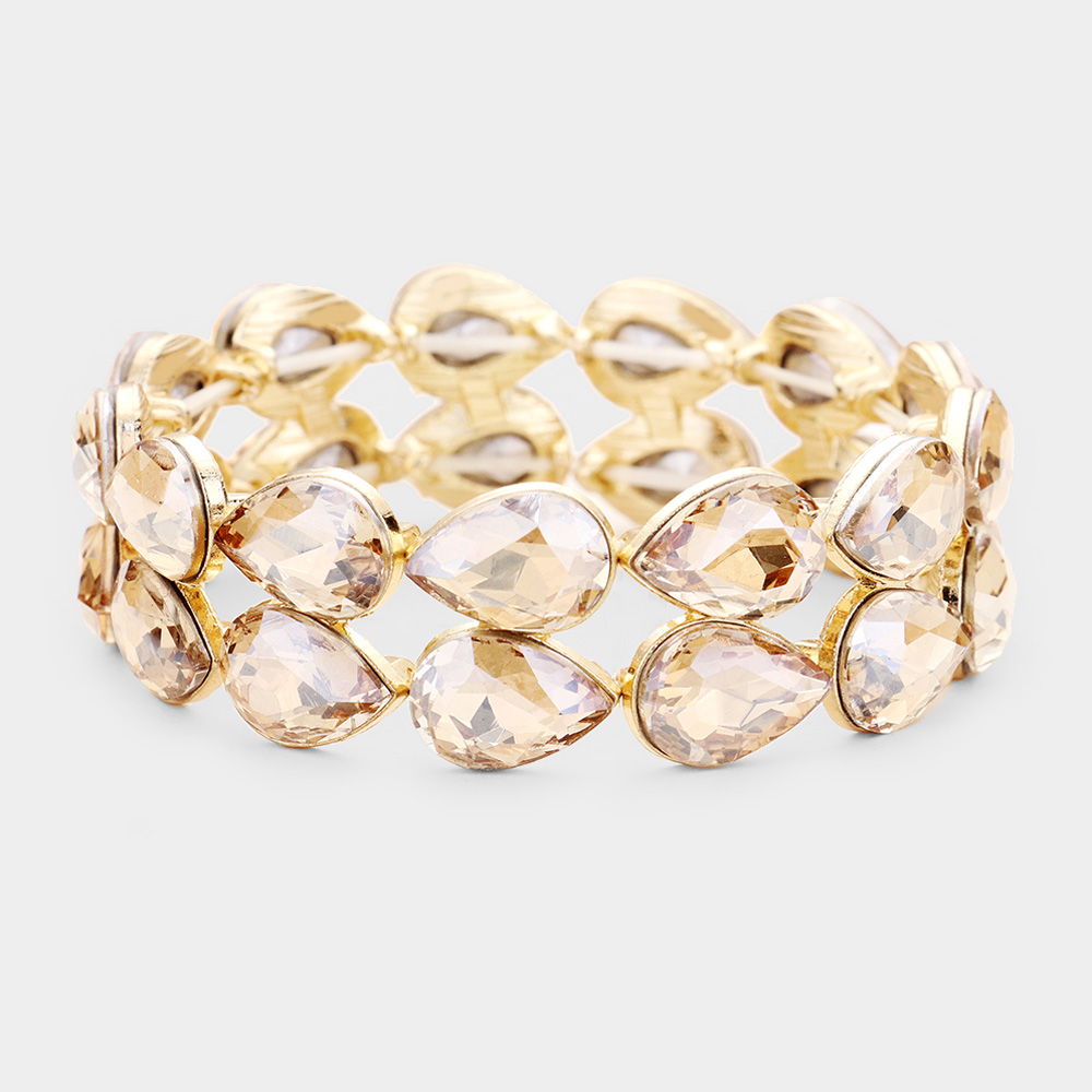 Glass Crystal Teardrop Stretch Evening Bracelet