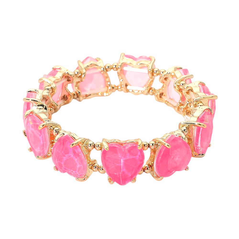 • This heart shape stretch bracelet features a continuous row of faceted heart accents that create eye-catching dimension and shine. Designed for comfortable slip-on wear, it delivers a bold yet romantic look that works for everyday styling, gifting moments, and statement jewelry collections across seasonal and special-occasion assortments.