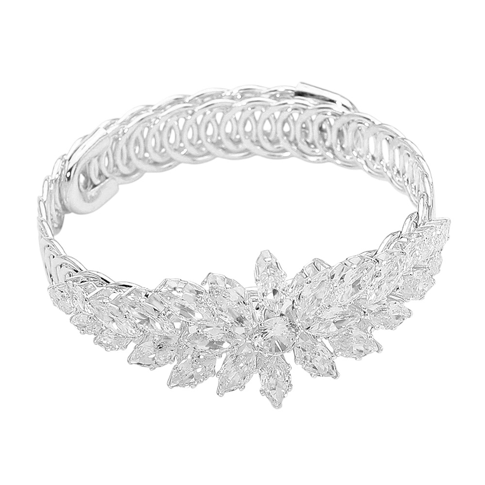 • Stunning bracelet featuring marquise-cut crystal clusters arranged in a refined floral design with an adjustable band for a comfortable fit. A beautiful accessory for weddings, formal events, and special occasions, adding timeless sparkle to any style.