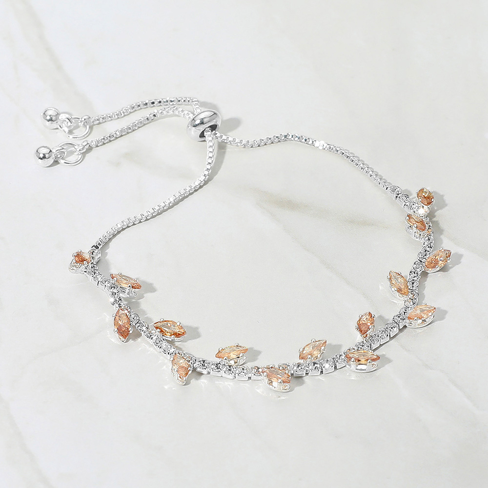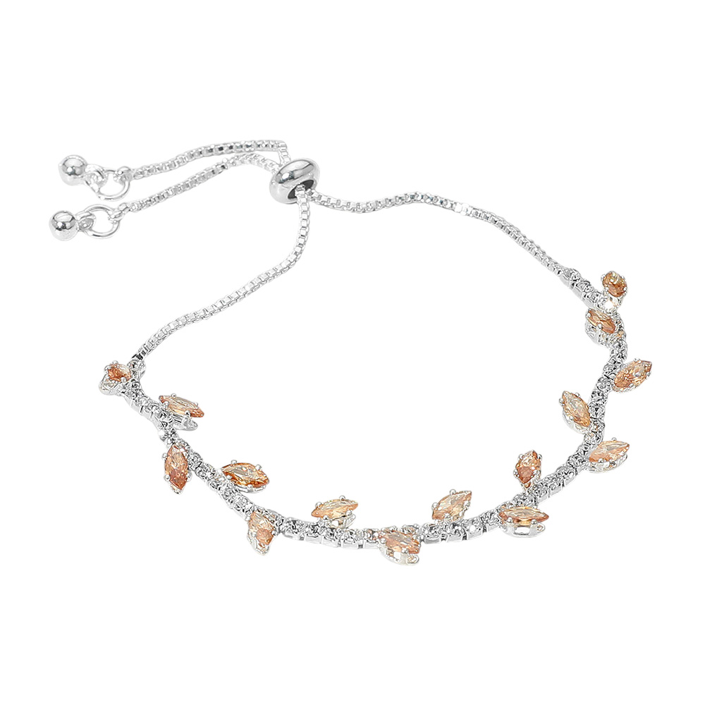 Marquise CZ Stone Cluster Pointed Leaf Vine Adjustable Cinch Pull Tie Bracelet