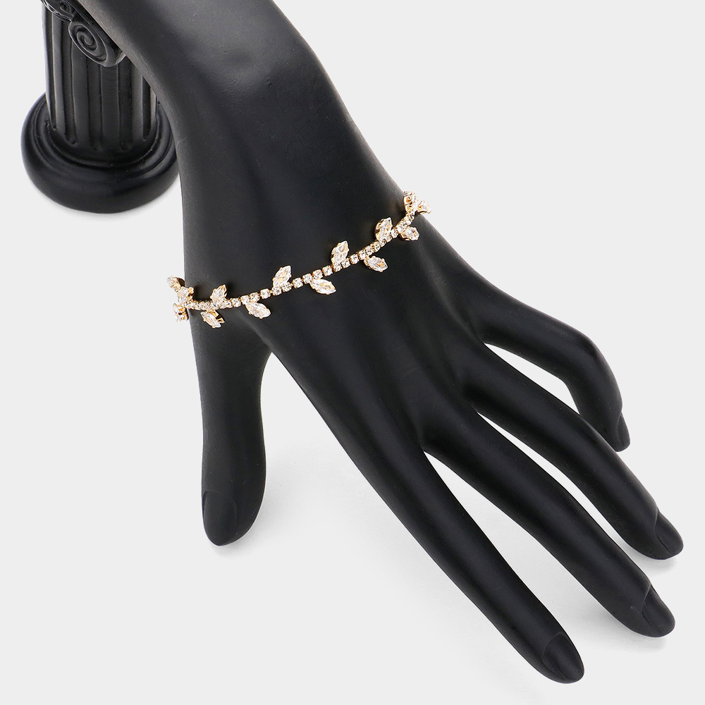 Marquise CZ Stone Cluster Pointed Leaf Vine Adjustable Cinch Pull Tie Bracelet