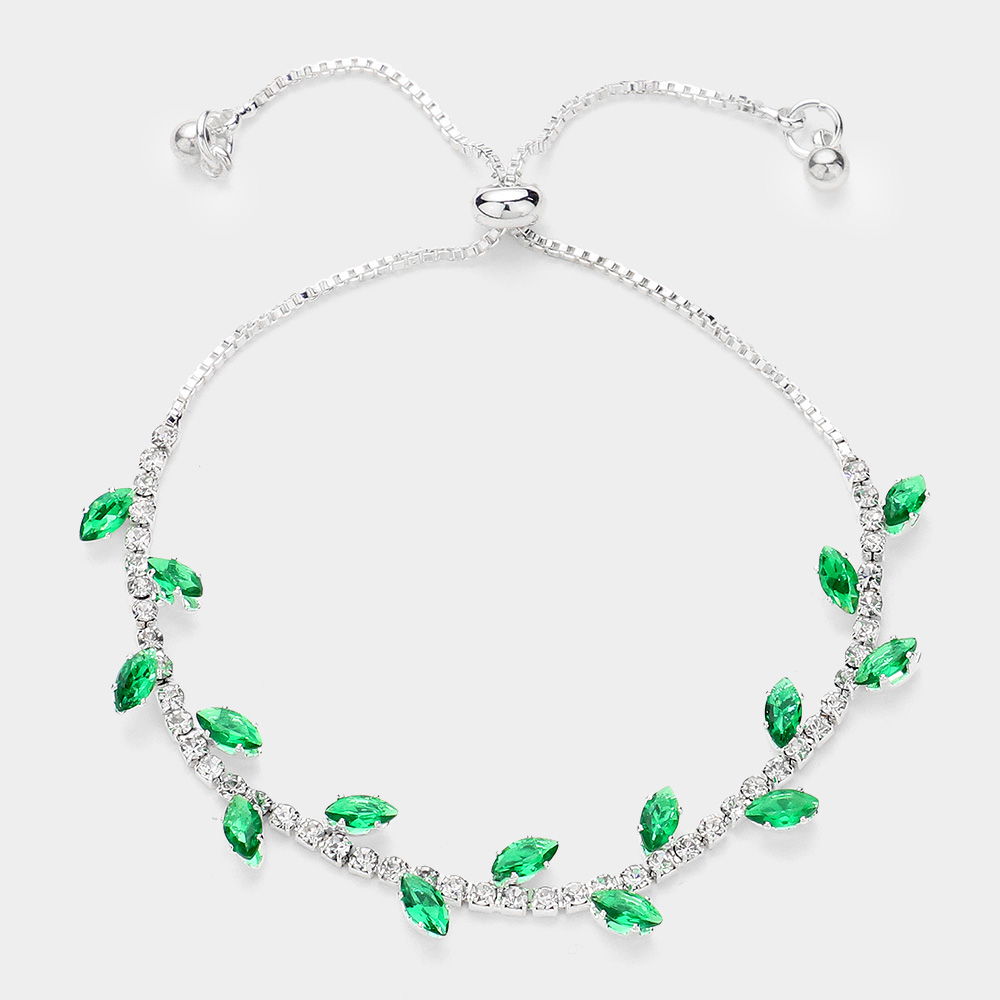 Marquise CZ Stone Cluster Pointed Leaf Vine Adjustable Pull Tie Bracelet