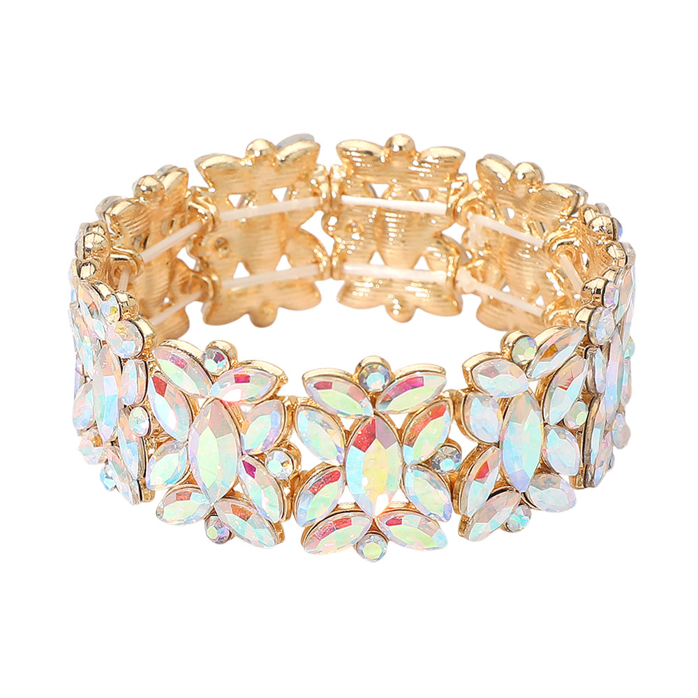 • A sparkling stretch bracelet with marquise floral crystal detailing designed for effortless elegance. Comfortable to slip on and perfect for parties, weddings, and formal events, adding radiant shine and a refined finishing touch to both evening and special-occasion looks.