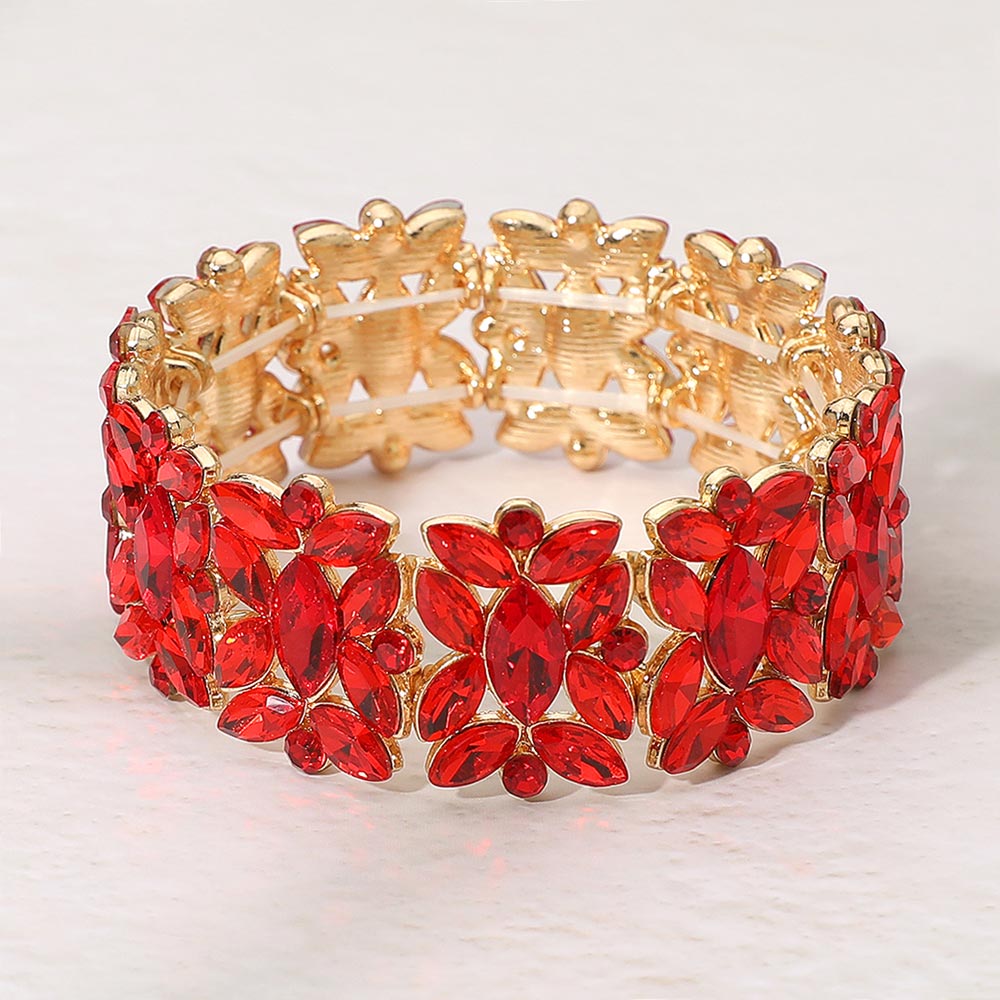 • A sparkling stretch bracelet with marquise floral crystal detailing designed for effortless elegance. Comfortable to slip on and perfect for parties, weddings, and formal events, adding radiant shine and a refined finishing touch to both evening and special-occasion looks.