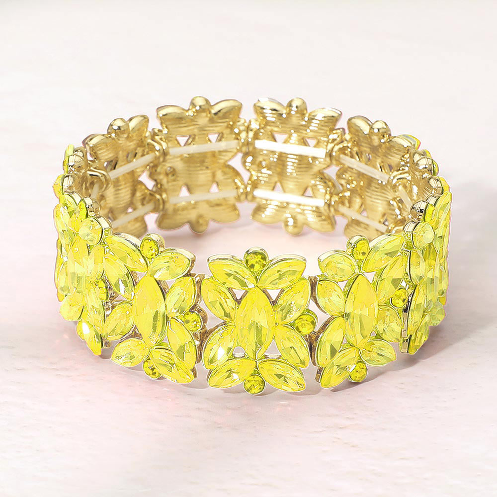 Marquise Floral Oval Crystal Cluster Stretch Evening Bracelet