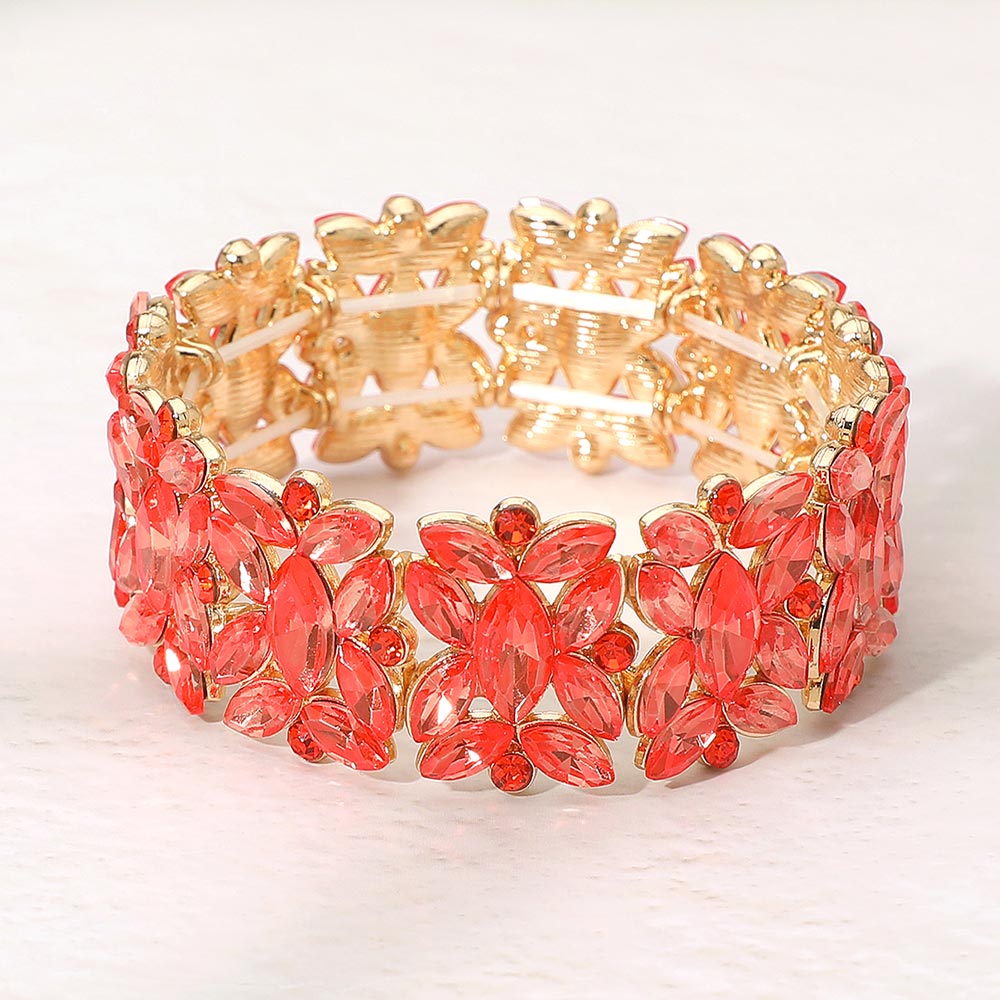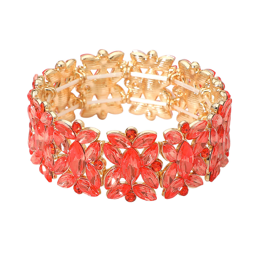 • A sparkling stretch bracelet with marquise floral crystal detailing designed for effortless elegance. Comfortable to slip on and perfect for parties, weddings, and formal events, adding radiant shine and a refined finishing touch to both evening and special-occasion looks.