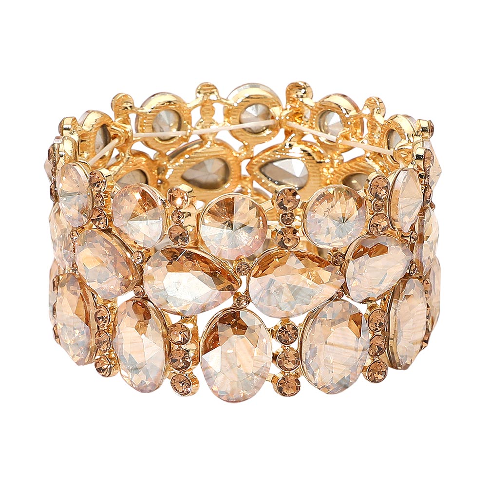 Teardrop Glass Crystal Pave Stretch Evening Bracelet