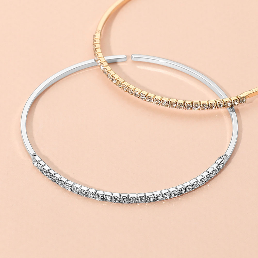 One Row Rhinestone Paved Bar Accent Adjustable Bangle Evening Bracelet
