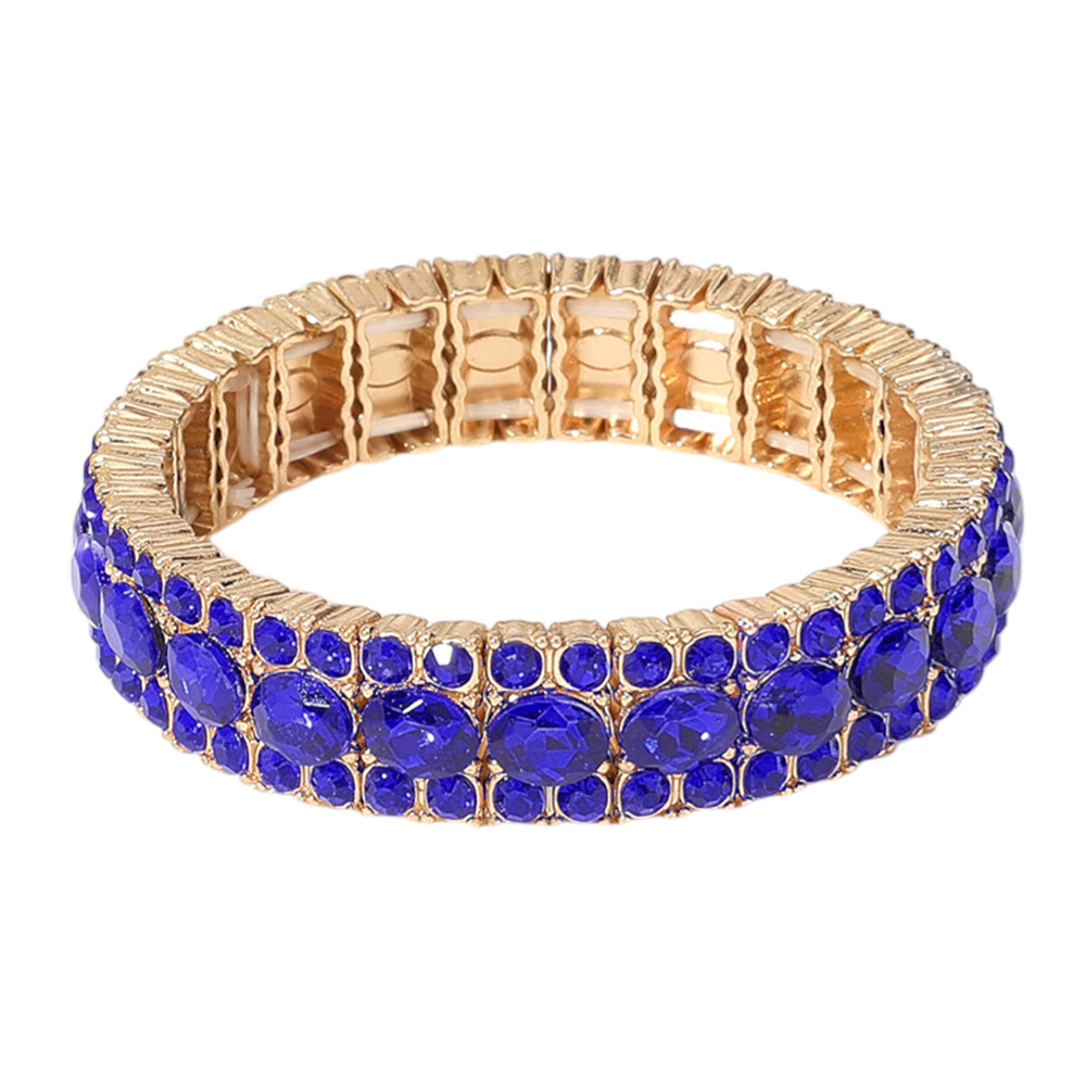 Oval Round Glass Stone Cluster Beaded Stretch Evening Bracelet