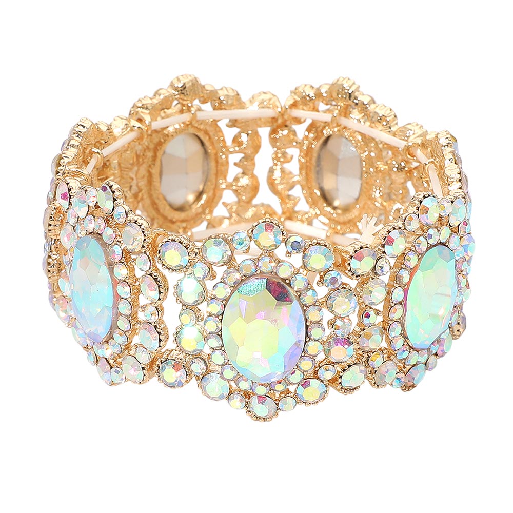 Details • Size : 1.4" H • Stretchable • Eye-catching stretch bracelet featuring oval center accents surrounded by layered crystal detailing. Designed to deliver bold elegance with comfortable wear, this statement bracelet elevates evening looks, special occasions, formal outfits, and standout everyday styling with timeless glamour. • Lead and Nickel Compliant