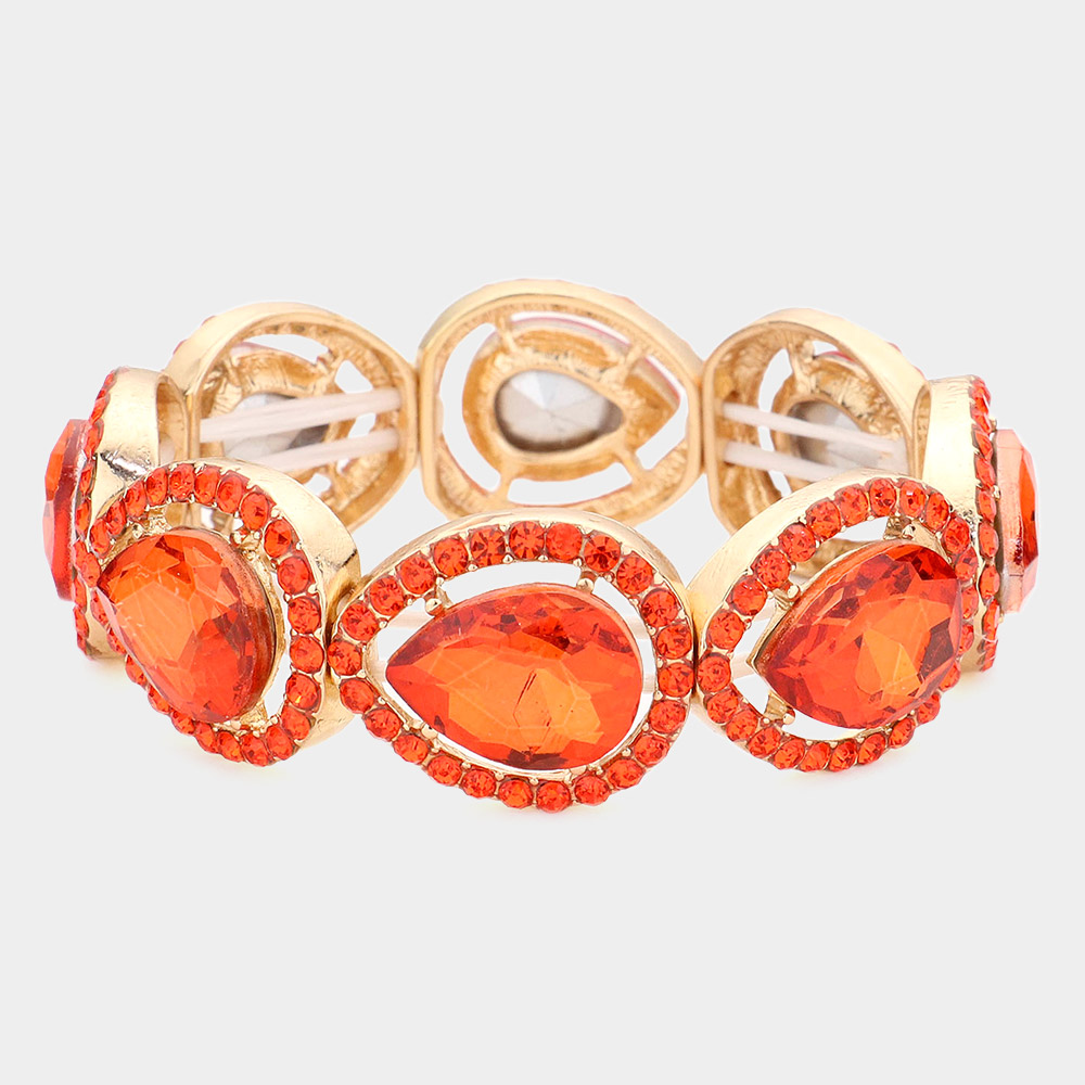 Pave Teardrop Trim Glass Crystal Stretch Evening Bracelet