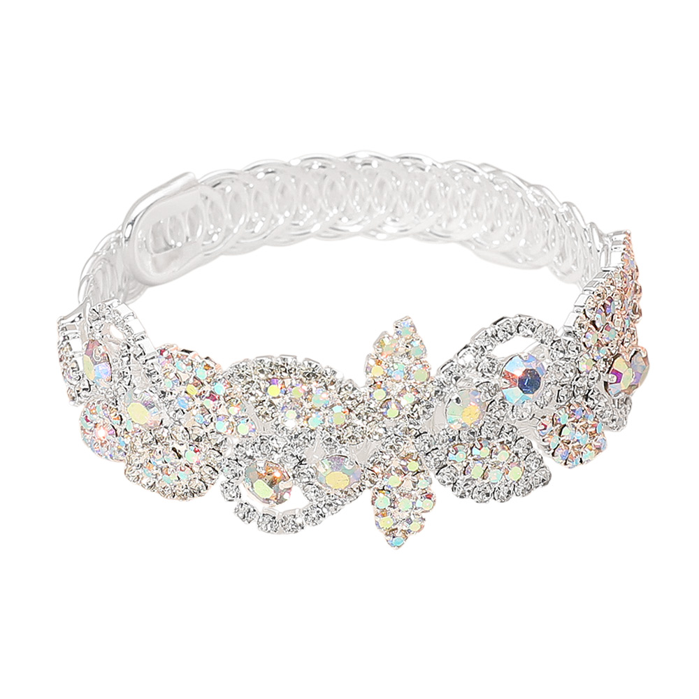 Glass Crystal Teardrop Floral Stretch Evening Bracelet