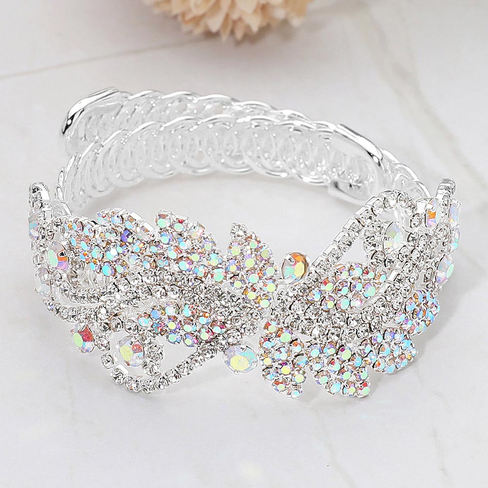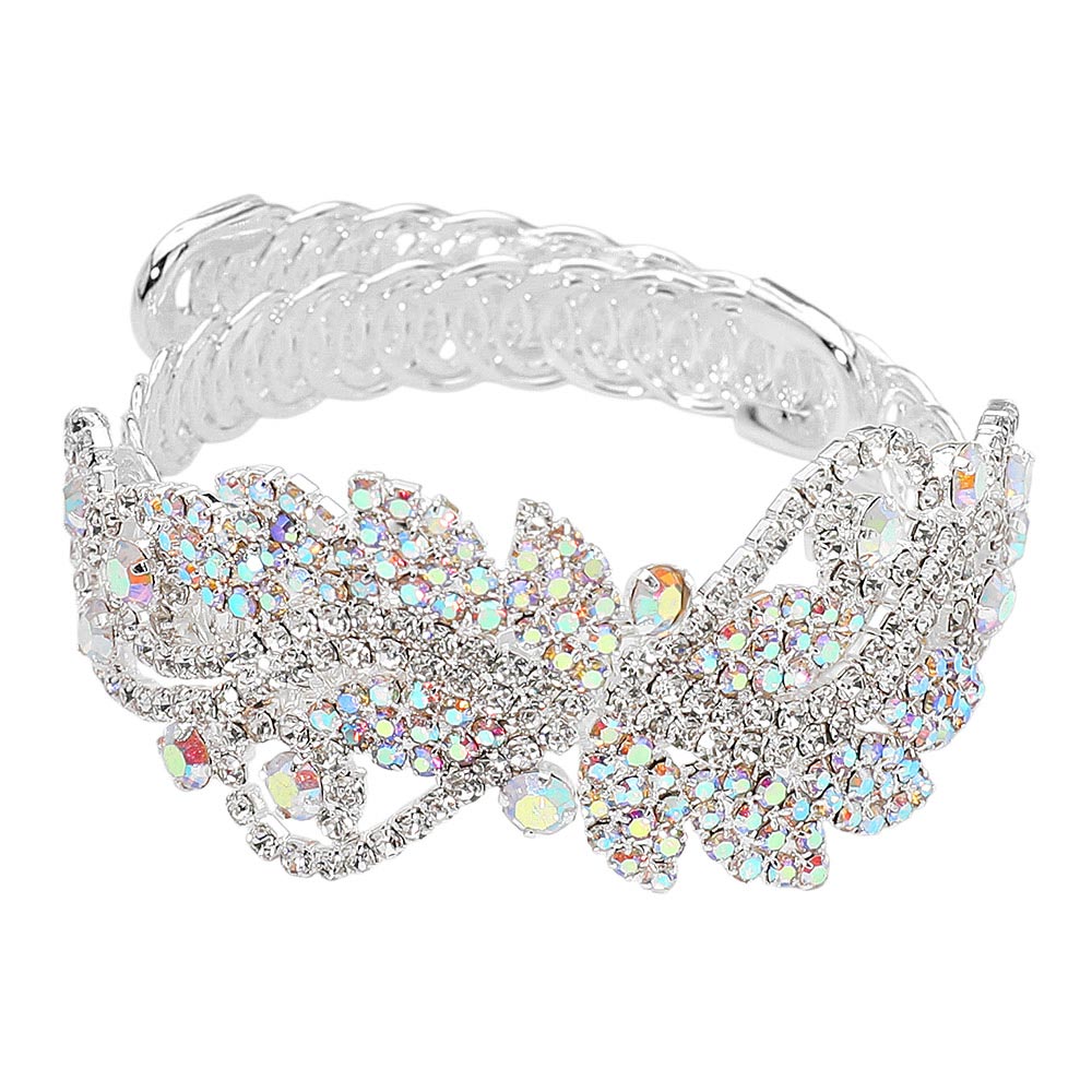 • Sparkling leaf-vine rhinestone bracelet featuring intricate crystal clusters, elegant scrolling accents, and a comfortable adjustable fit. A stunning accessory for formal events, weddings, and special occasions, adding refined shine to any look.