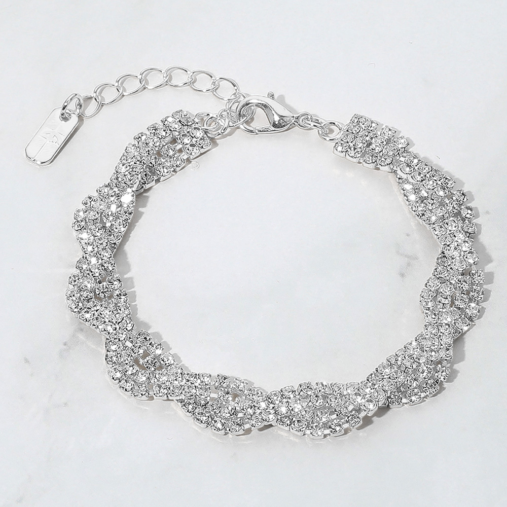 • Sophisticated rhinestone bracelet featuring a twisted multi-row design that sparkles with every movement. Complete with an adjustable chain for a secure fit, this bracelet is ideal for weddings, parties, or adding timeless elegance to your everyday look.