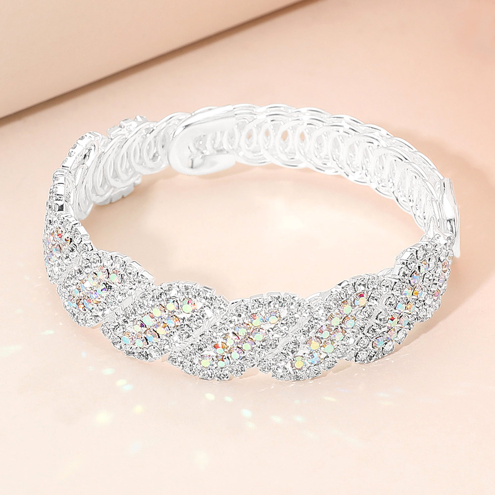 Details • Size : 0.5" H • Adjustable • Add timeless sparkle to your look with this elegant twisted crystal adjustable bracelet. Its intricate spiral design is adorned with shimmering stones that catch the light beautifully, while the flexible band ensures a perfect, comfortable fit for both special events and daily wear. • Lead and Nickel Compliant