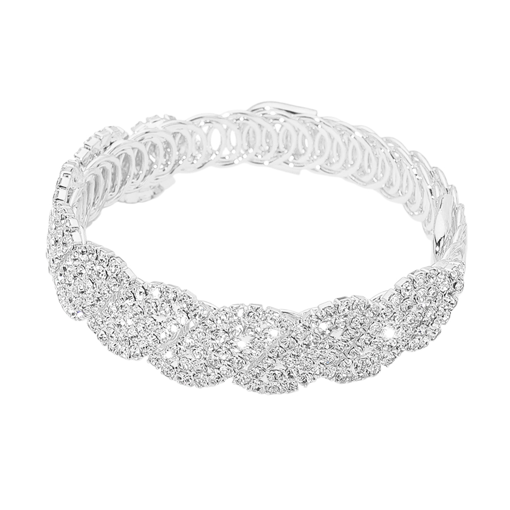 Rhinestone Paved Twisted Adjustable Evening Bracelet
