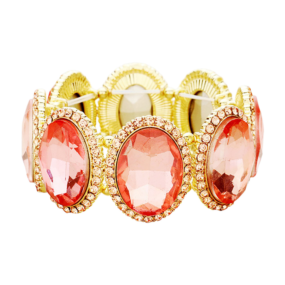 Rhinestone Trim Oval Crystal Stretch Evening Bracelet