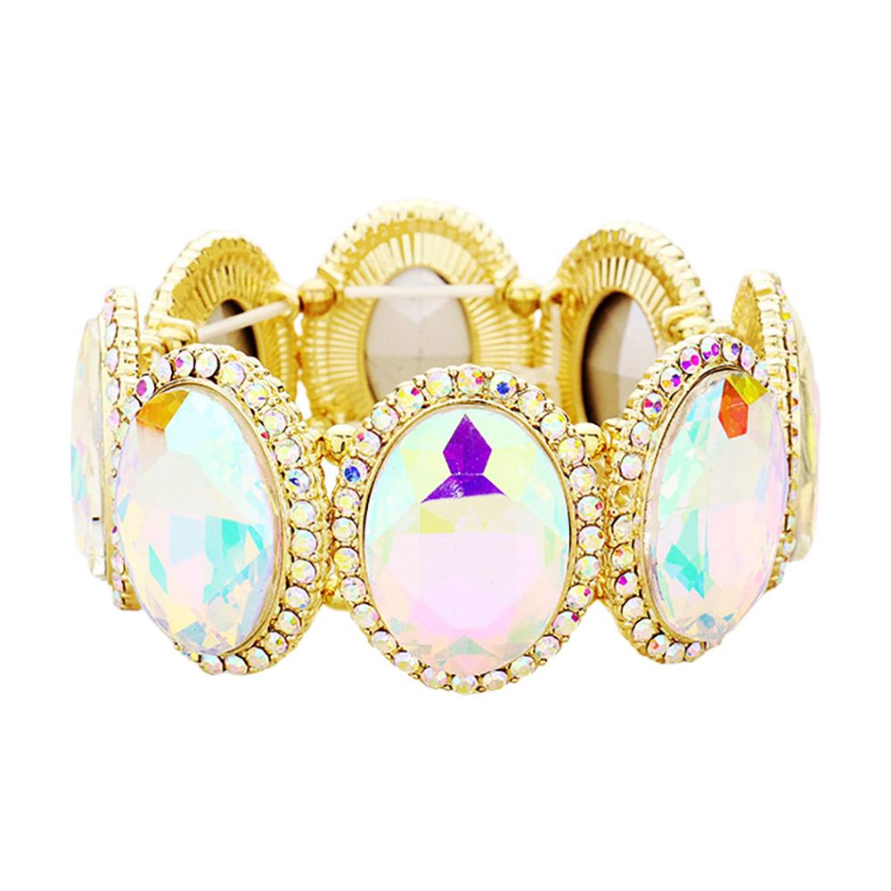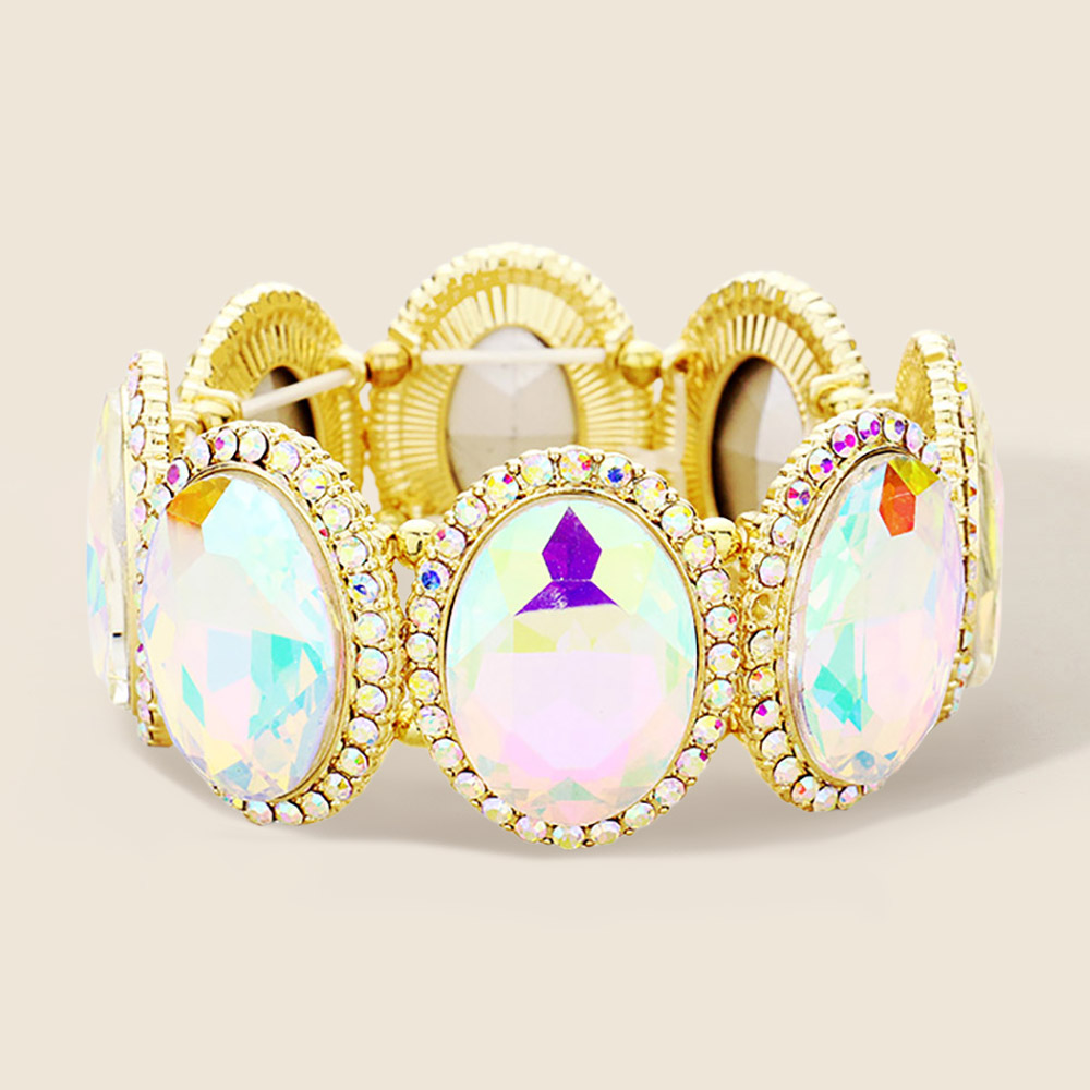 • Add glamour to your look with this oval crystal stretch bracelet featuring sparkling stones framed in dazzling accents. The flexible fit ensures comfort while delivering bold elegance. Ideal for weddings, parties, and special occasions where standout style matters.
