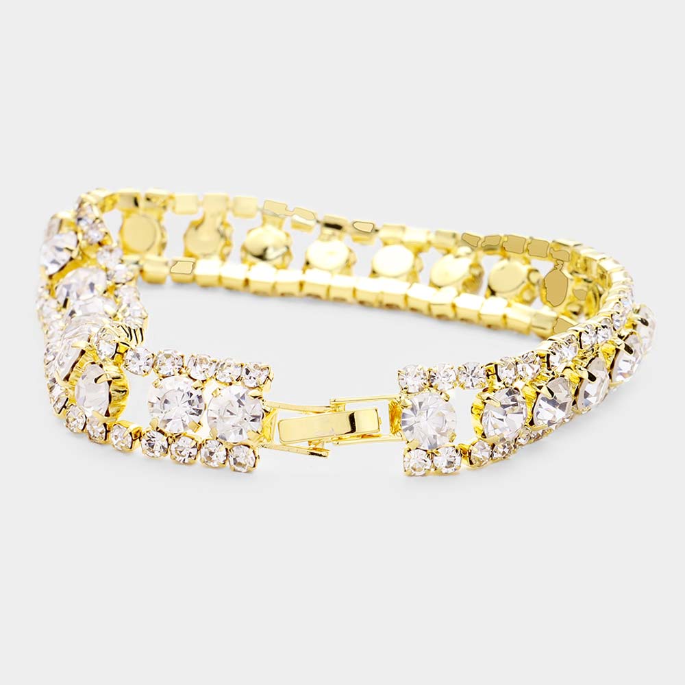 Teardrop Crystal Rhinestone Pave Hand Chain Evening Bracelet