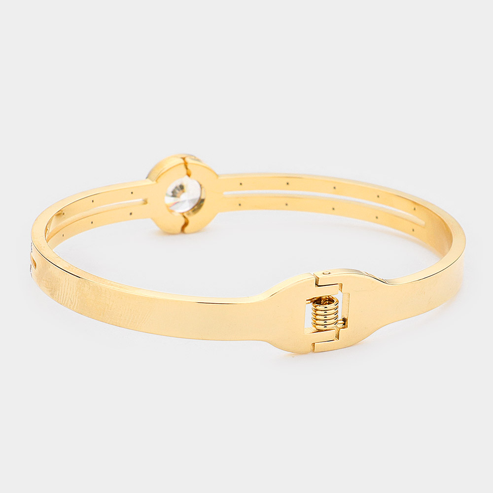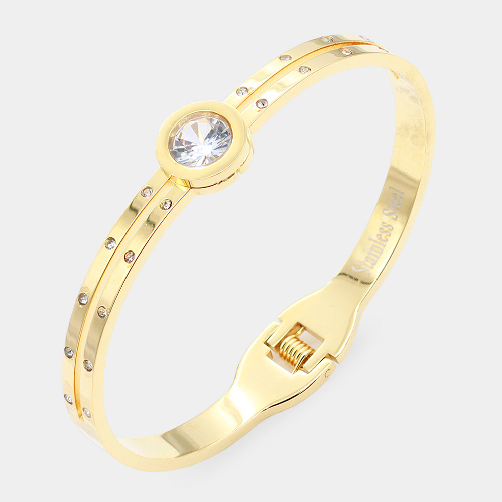 Round CZ Stone Accented Stainless Steel Evening Bracelet
