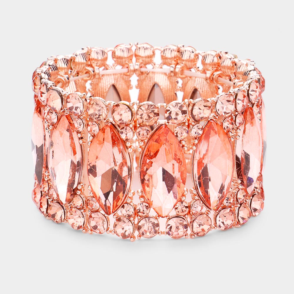 Round Marquise Stone Cluster Stretch Evening Bracelet