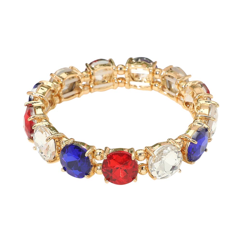 Round Stone Cluster Beaded Stretch Evening Bracelet