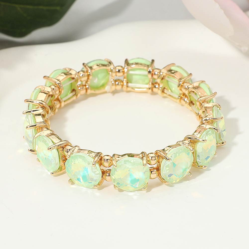 Round Stone Cluster Beaded Stretch Evening Bracelet