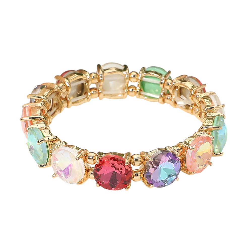 Round Stone Cluster Beaded Stretch Evening Bracelet