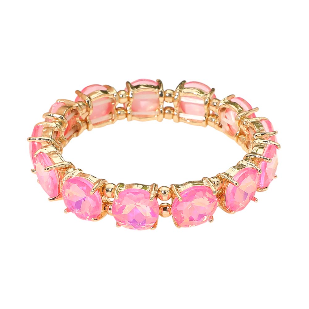 Round Stone Cluster Beaded Stretch Evening Bracelet