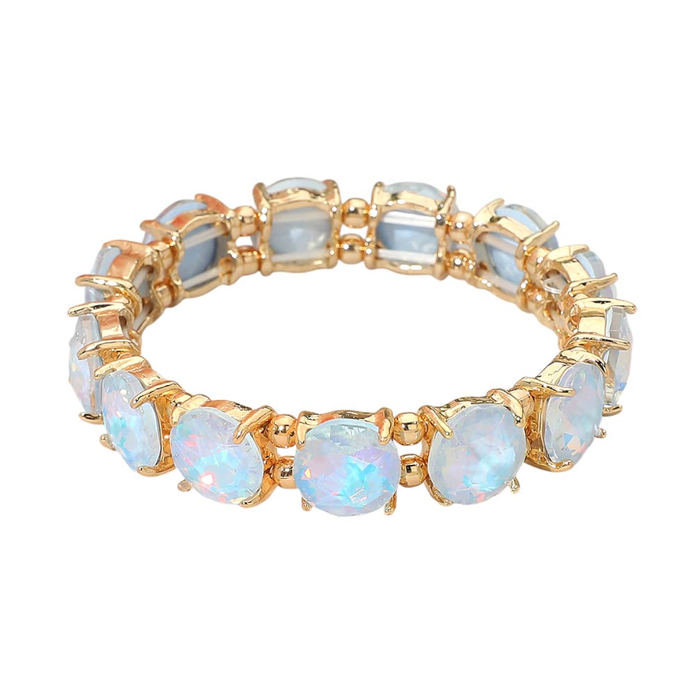 Round Stone Cluster Beaded Stretch Evening Bracelet