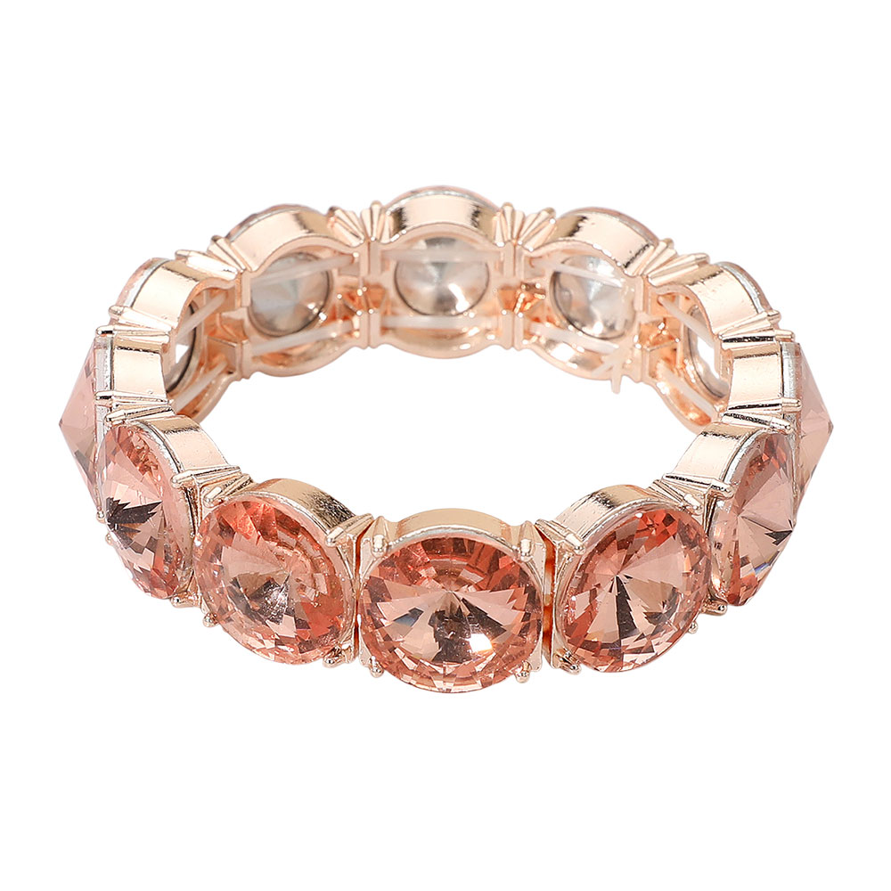 • Elegant stretch bracelet featuring large round-cut faceted stones arranged in a continuous band. The flexible fit offers easy wear while the sparkling design adds a refined touch to everyday and special occasion outfits.