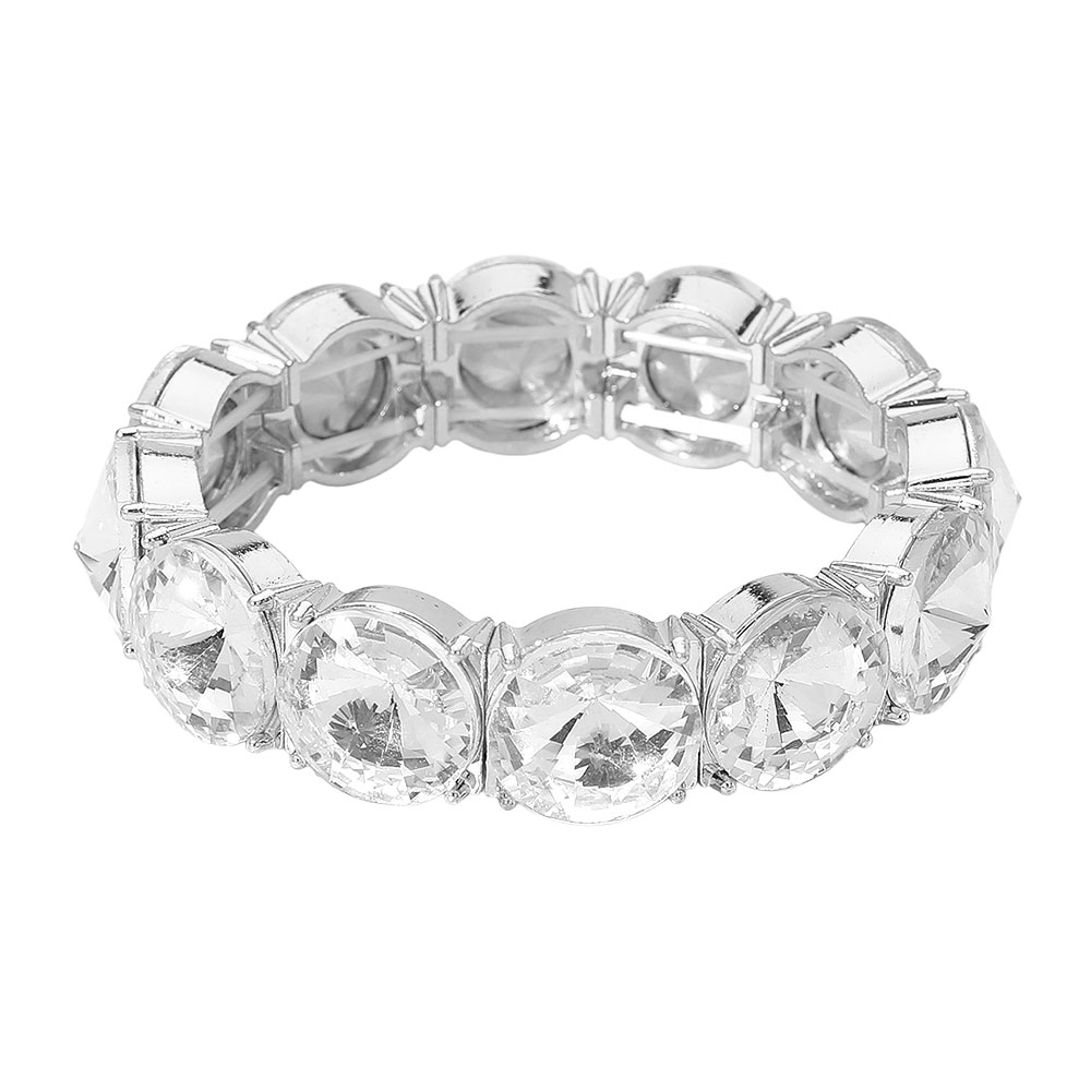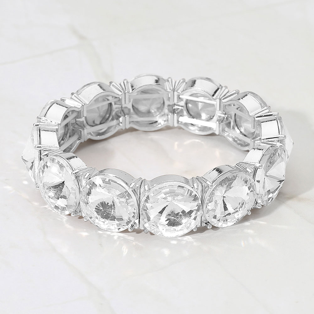 • Elegant stretch bracelet featuring large round-cut faceted stones arranged in a continuous band. The flexible fit offers easy wear while the sparkling design adds a refined touch to everyday and special occasion outfits.