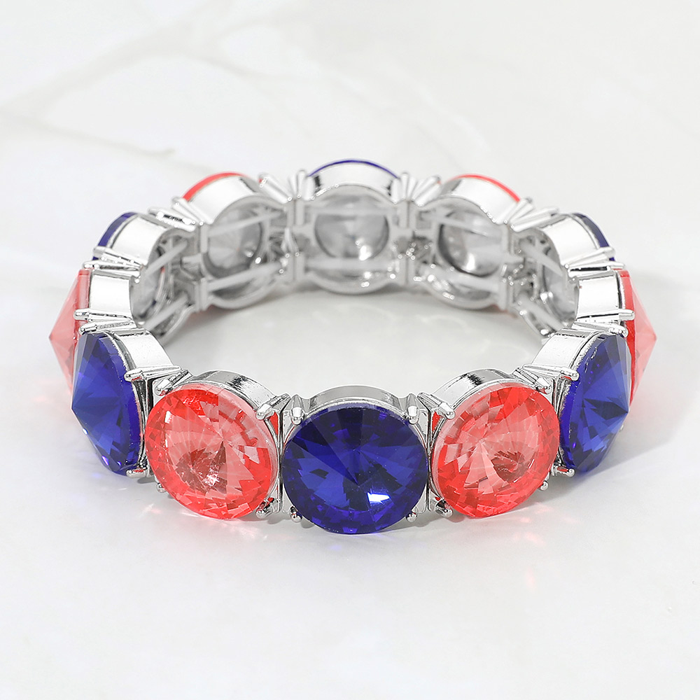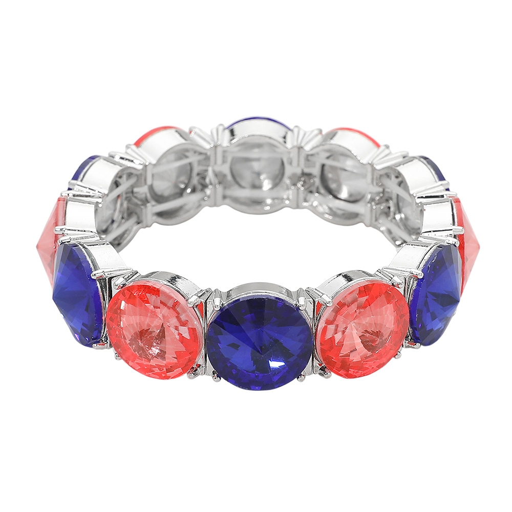 • Elegant stretch bracelet featuring large round-cut faceted stones arranged in a continuous band. The flexible fit offers easy wear while the sparkling design adds a refined touch to everyday and special occasion outfits.