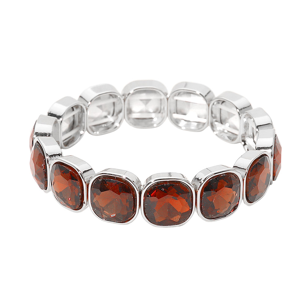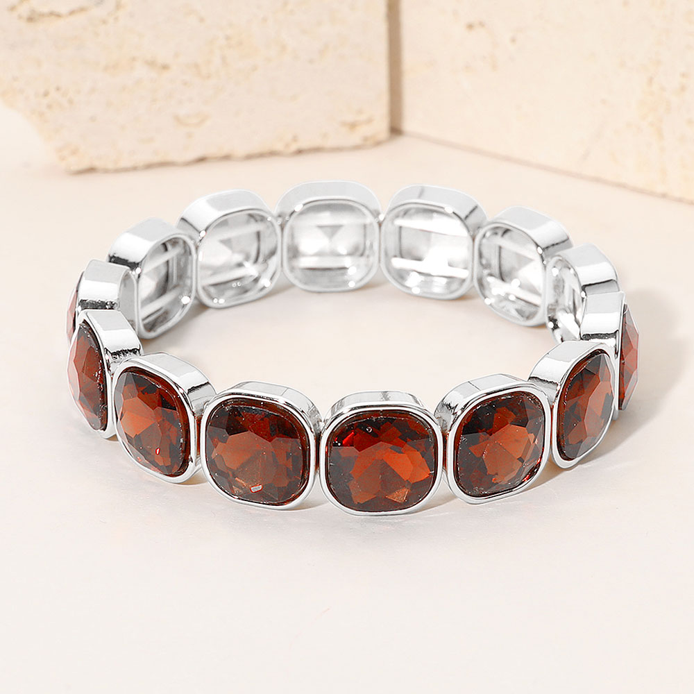 • A refined stretch bracelet showcasing square-cut stones that add brilliant sparkle and timeless sophistication. Designed for effortless wear, this striking accessory enhances any outfit with its polished finish and eye-catching geometric style, perfect for both everyday elegance and special occasions.