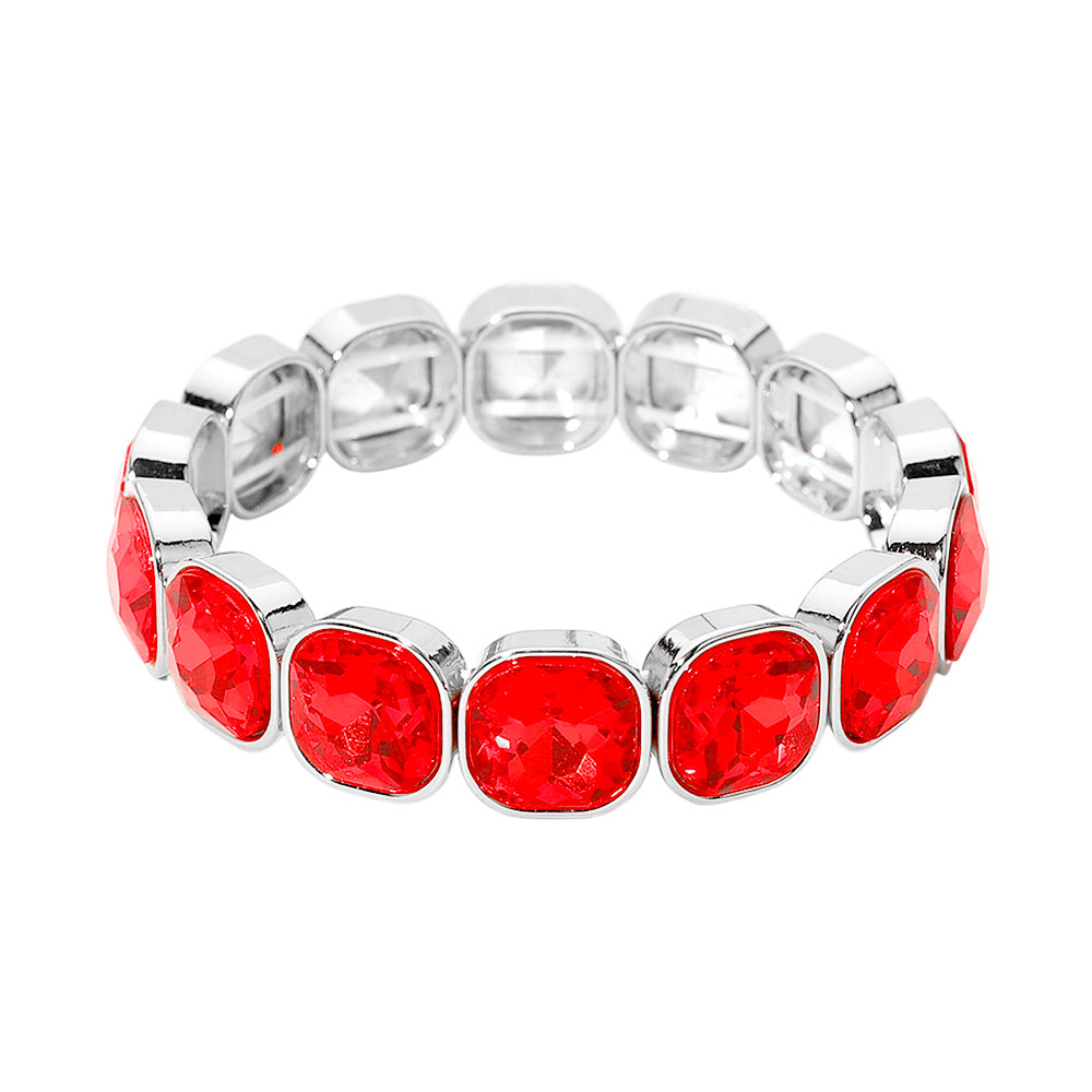 • A refined stretch bracelet showcasing square-cut stones that add brilliant sparkle and timeless sophistication. Designed for effortless wear, this striking accessory enhances any outfit with its polished finish and eye-catching geometric style, perfect for both everyday elegance and special occasions.