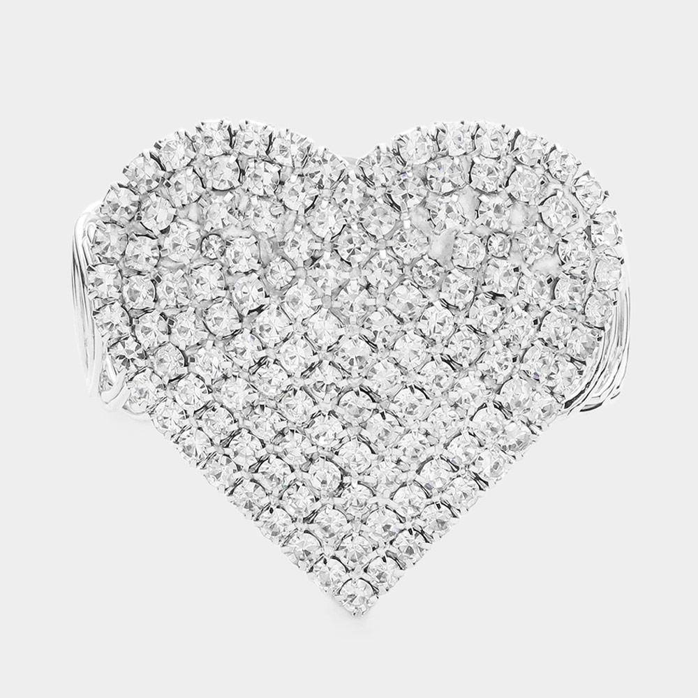 Stone Paved Mother of Pearl Heart Charm Pendant Necklace