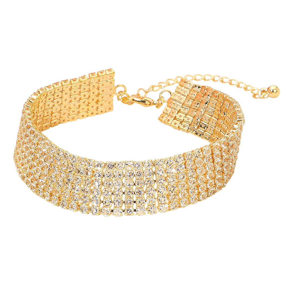 Wide Multi Row CZ Stone Paved Evening Bracelet