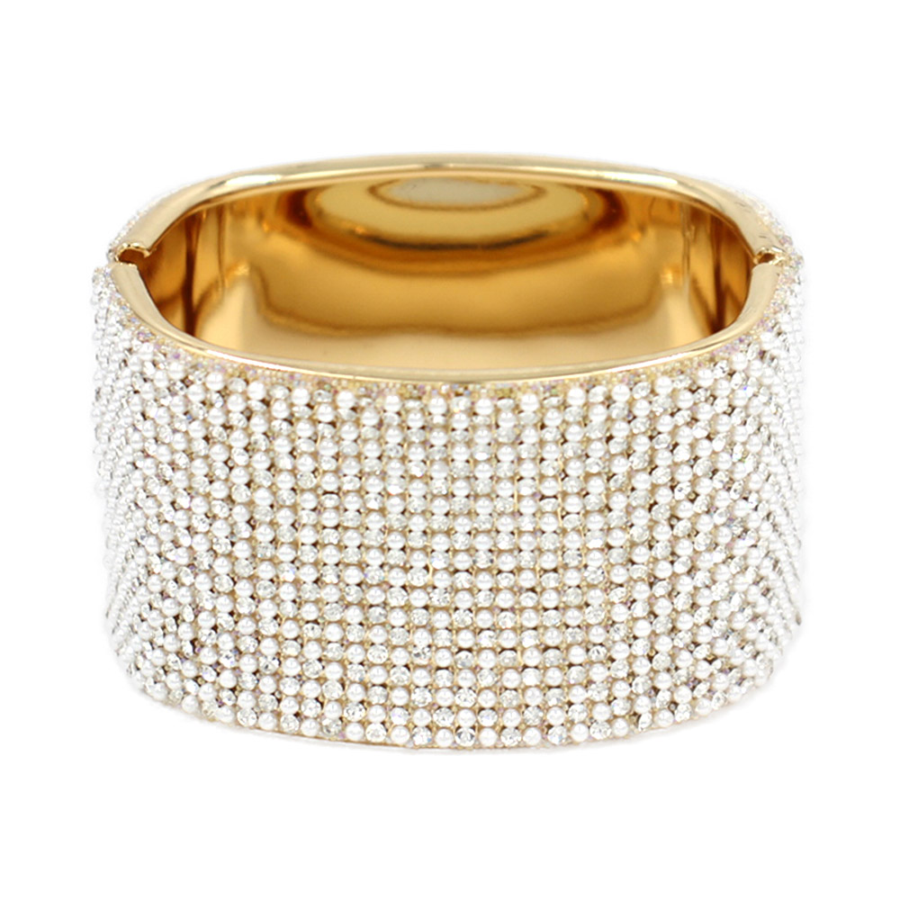 Wide Pearl Paved Hinged Evening Bangle Bracelet