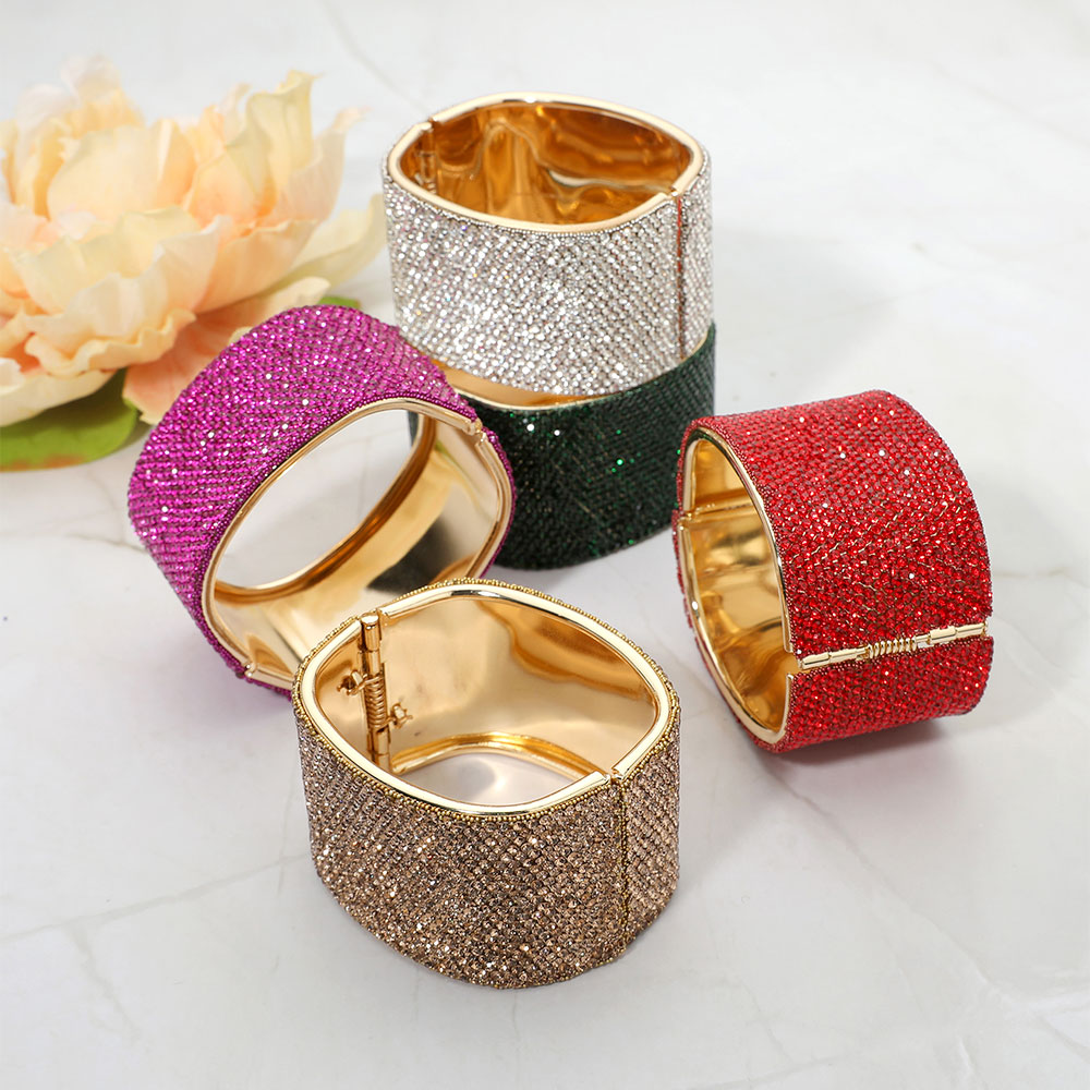 Wide Rhinestone Paved Hinged Evening Bangle Bracelet