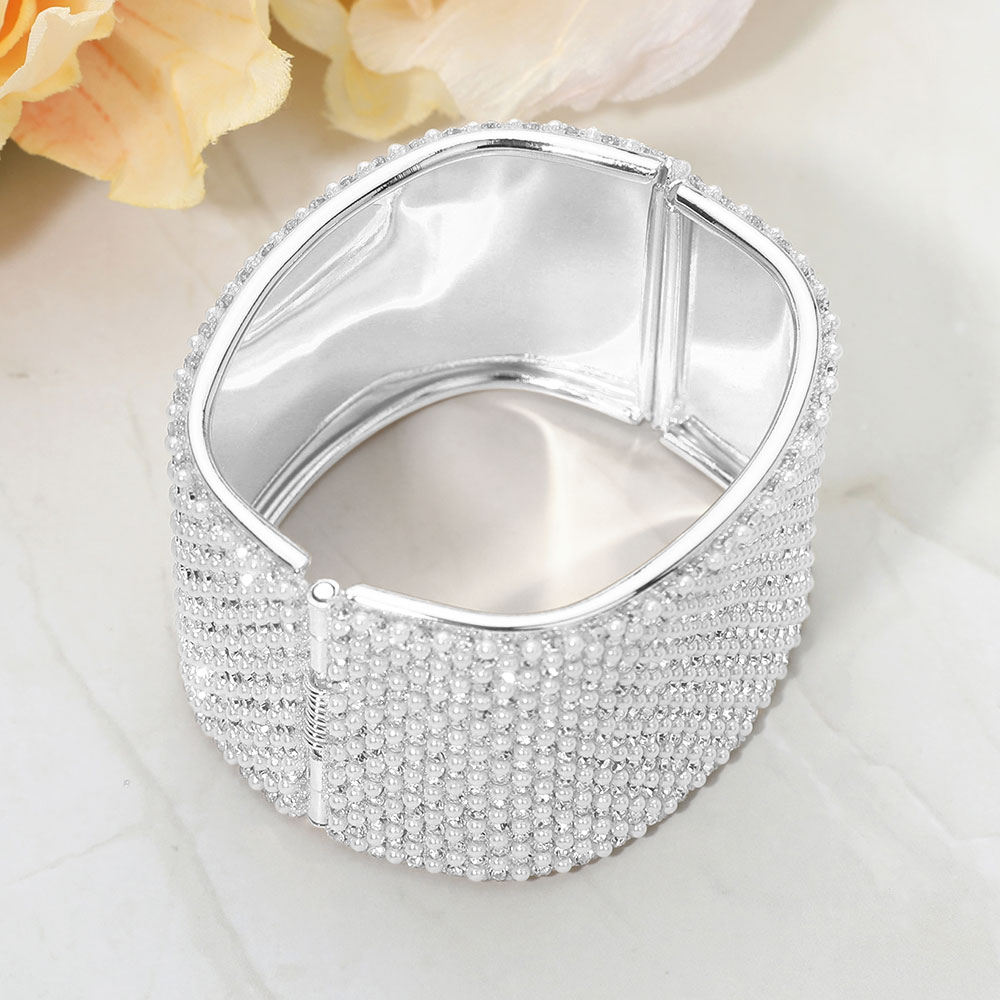 • Statement bangle bracelet featuring a bold, wide silhouette with a smooth interior and secure hinge closure. Designed to elevate evening looks, bridal styling, and special occasions, this bracelet delivers high-impact shine and a polished finish for confident, standout accessorizing.