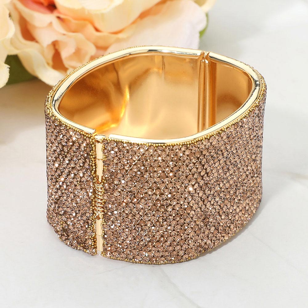 Wide Rhinestone Paved Hinged Evening Bangle Bracelet
