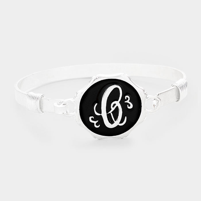 -C- Acrylic Initial Monogram Metal Disc Hook Bracelet