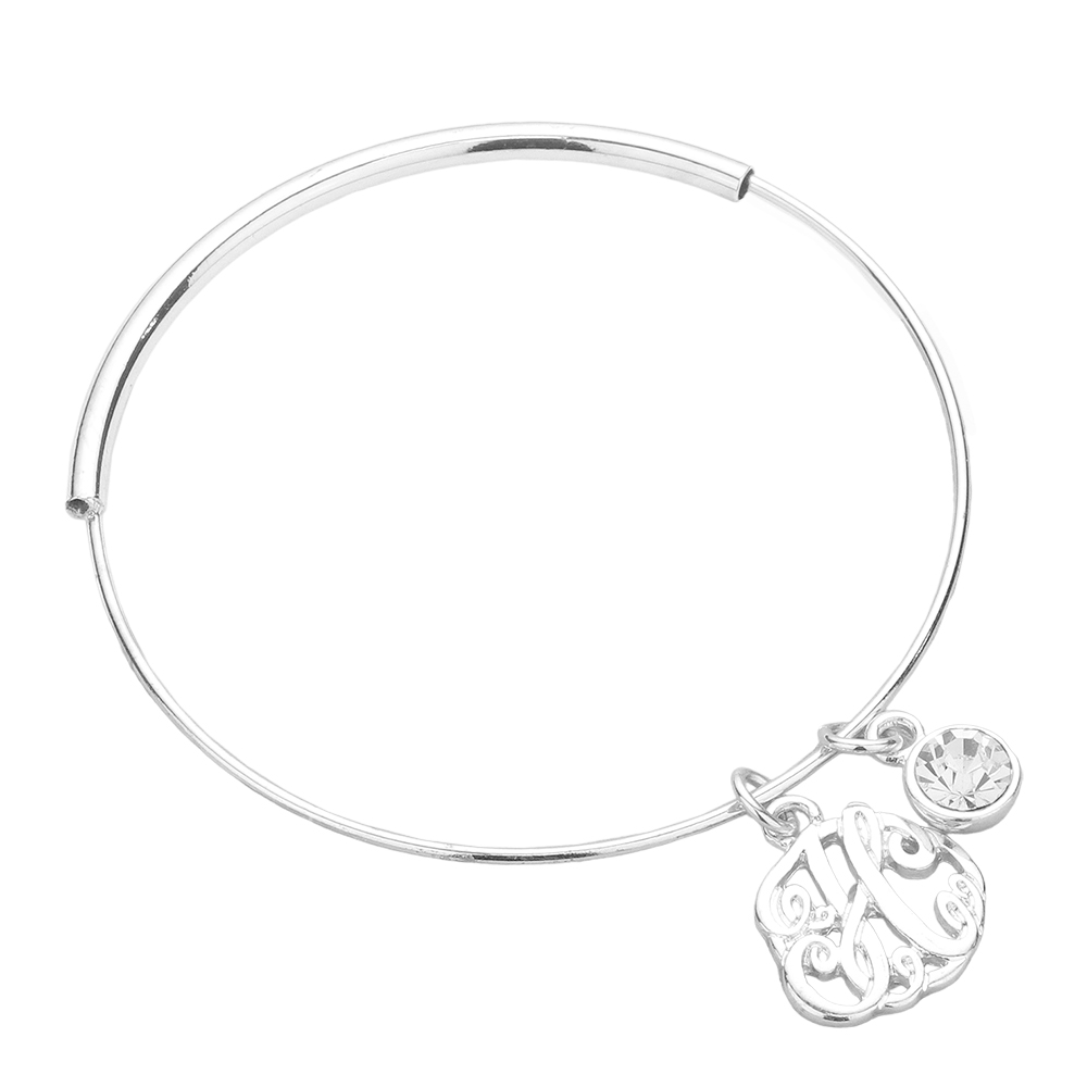 -N- White Gold Dipped Metal Initial Monogram Charm Bracelet