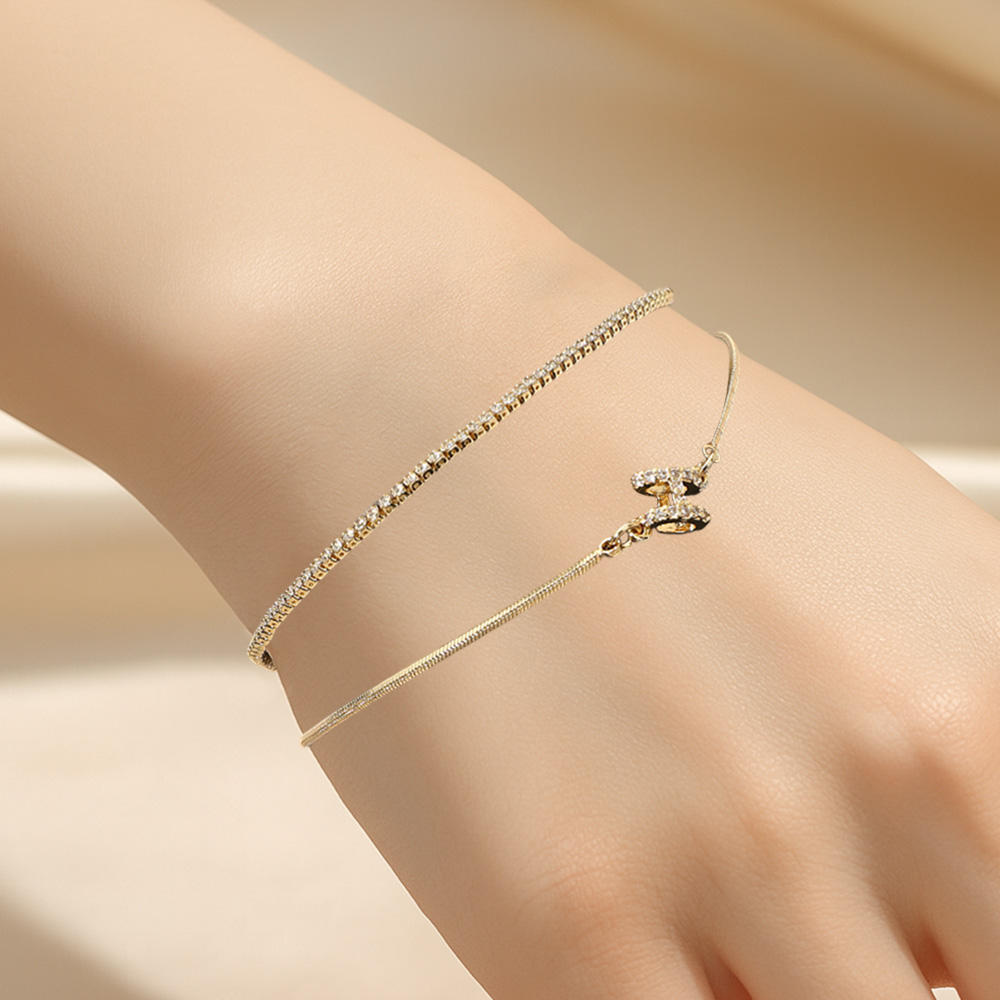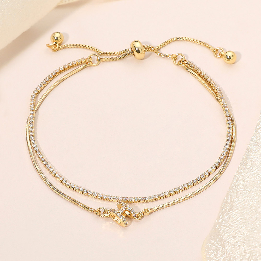 Details • Size : 0.3" H • Adjustable • Elevate your style with this adjustable layered crystal chain bracelet, designed for a refined, modern look. Its dual-chain detail and sparkling accents create a versatile piece that complements any outfit, from casual to formal. A chic and timeless addition to every jewelry collection. • Gold Dipped • Lead and Nickel Compliant