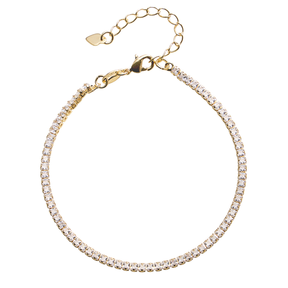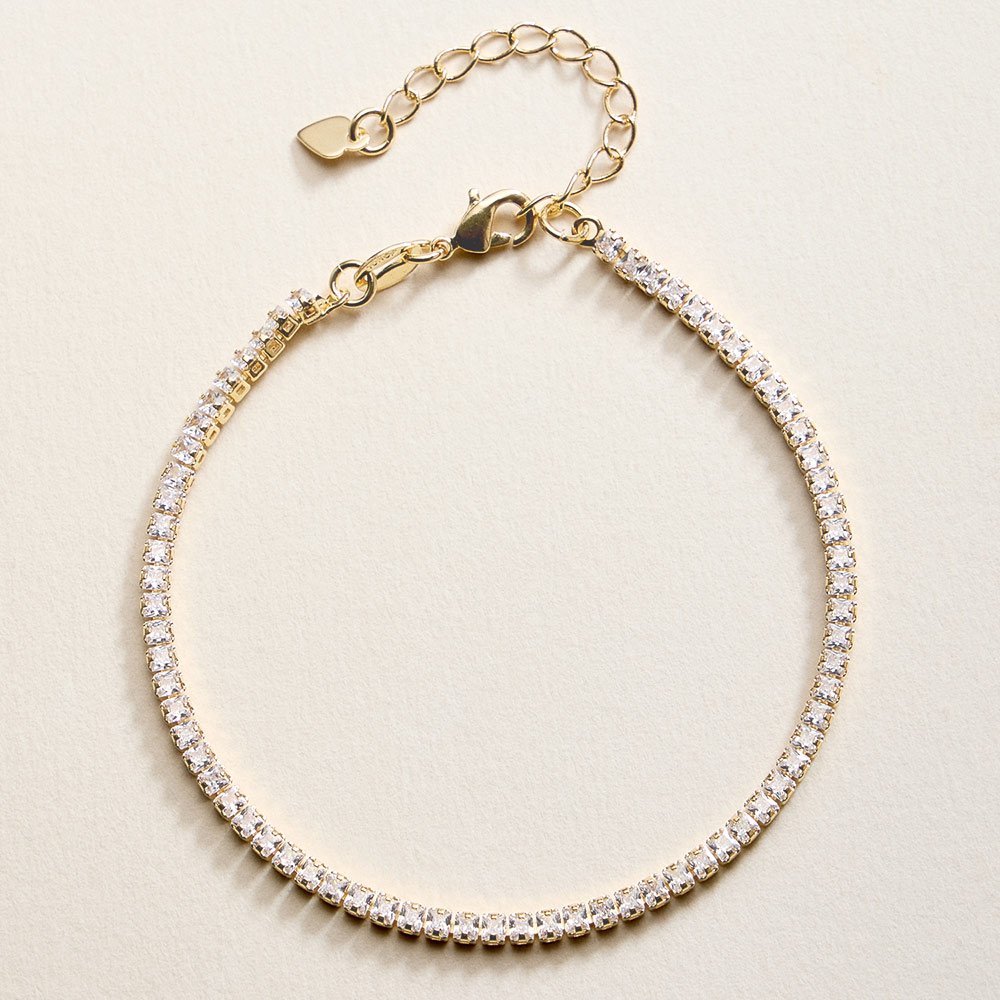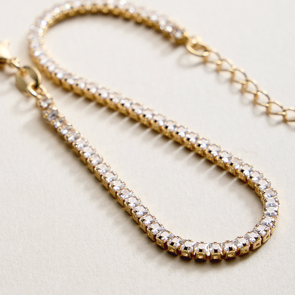 • This classic tennis chain bracelet offers a timeless, elegant look with a sleek, refined design. Finished with an adjustable extension for a comfortable fit, it’s perfect worn alone or layered with other bracelets. A versatile jewelry staple ideal for everyday wear, gifting, and curated boutique collections.